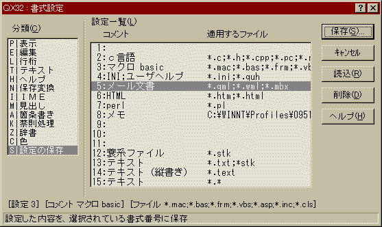 (4) 最後に書式設定ダイアログの「設定の保存」を選択して、「保存...」ボタンを押し、