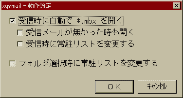 メールが無かったときに、*.mbx ファイルを開かないようにするには、チェックを外します。